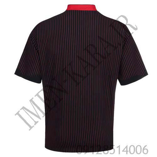 روپوش سرآشپزی مشکی با راهراه قرمز (کتان کش) ایمن کارا