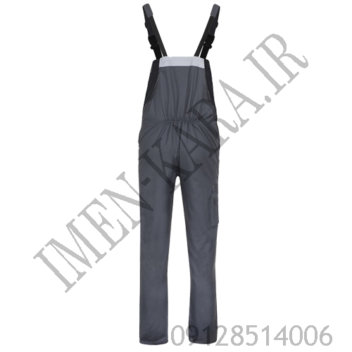 لباس کار دوبنده طوسی با نوار کرم به شکل سرهمی یکپارچه طراحی شده تا بهراحتی بر روی لباس زیر پوشیده شده و هیچ محدودیتی در حرکت کاربر ایجاد نکند.