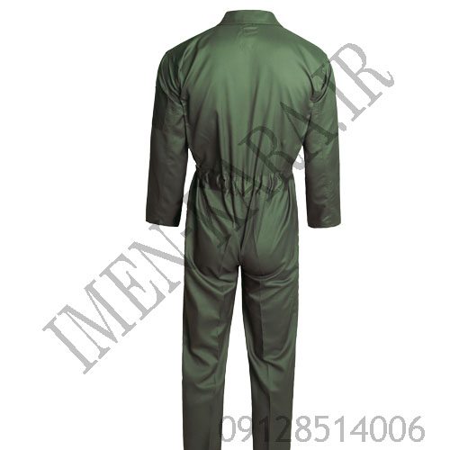 لباس کار یکسره سبز طرح خلبانی با جنس پارچه فلامنت، انتخابی عالی برای مشاغل پرتردد و پرریسک بوده