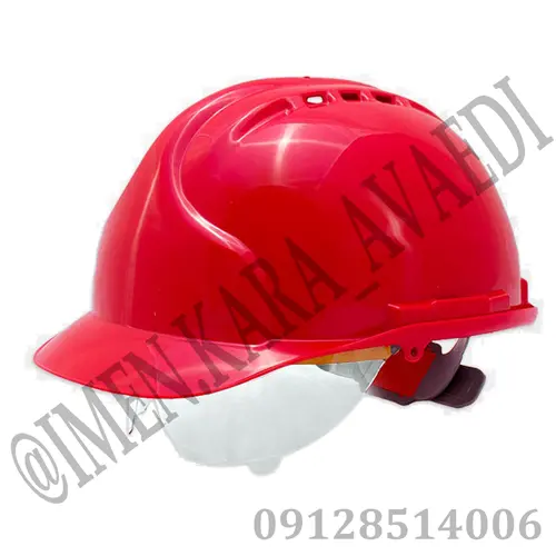 کلاه ایمنی عینک دار صنعتی مدل MK7، رنگ قرمز – عرضه انحصاری ایمن کارا