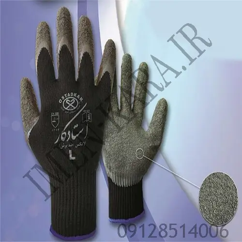 دستکشی که طراحی منحصربهفرد، روکش لاتکس 100% طبیعی، بافت پلیاستر مستحکم، لایه نخی ضدحساسیت و استانداردهای روز جهانی