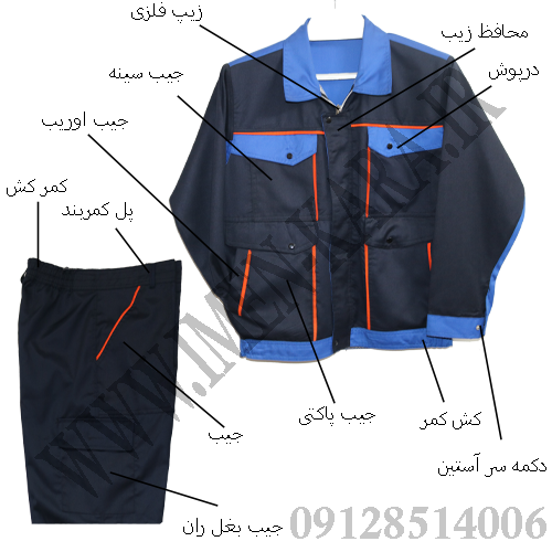 حداقل ۴ جیب بزرگ و کاربردی (دو جلو و دو پهلو)، لباس با زیپ باکیفیت فلزی و شلوار با کمر کشی، دکمه و زیپ مطمئن بسته میشود.