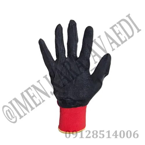 کف دستکش مشکی با پوشش نیتریلی و پشت دستکش مشکی کاموایی می باشد. سرانگشتان نیز دارای پوشش pvc می باشد. دستکش به طور کامل به دست می چسبد. پوشش کف دستکش برای جلوگیری از لغزش قطعات و خراشیدگی دست در حین انجام کار می باشد.