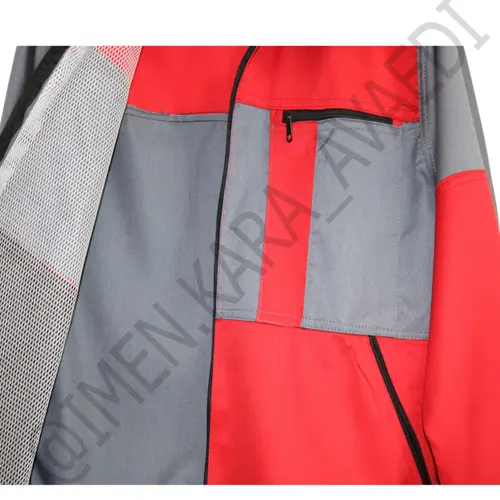 سبک مدرن و جلوهای جوانپسند به پوشش کاری شما میدهد. طوسی به عنوان رنگ پایه نشانه وقار، پاکیزگی و تخصص است و قرمزهای هوشمندانه، انرژی، هشدار، و امکان شناسایی سریع نیروها در محیطهای شلوغ را فراهم میکند.
