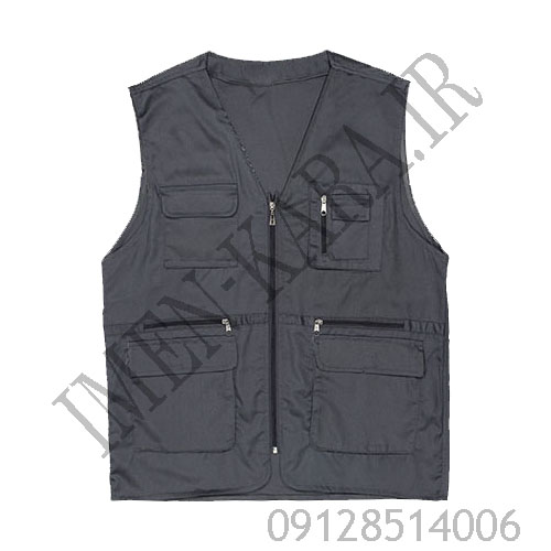 جلیقه کار مهندسی رنگ طوسی تیره طرح خبرنگاری، محصول برند خوشنام ایمن کارا،